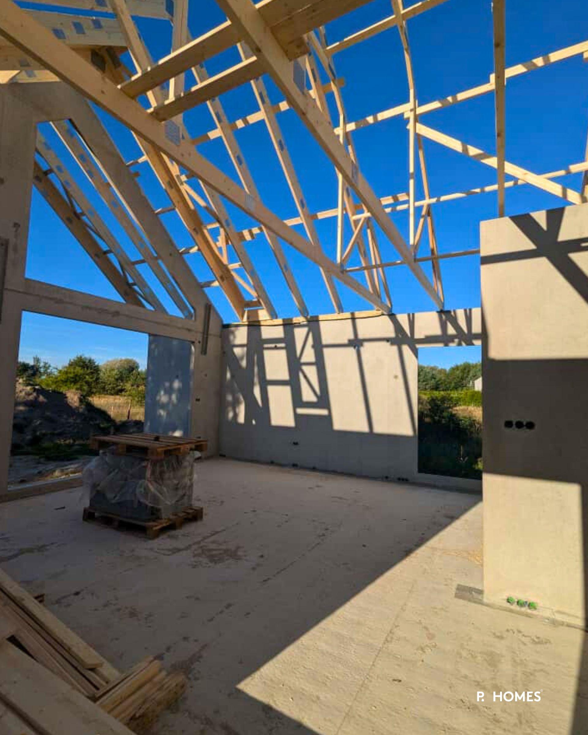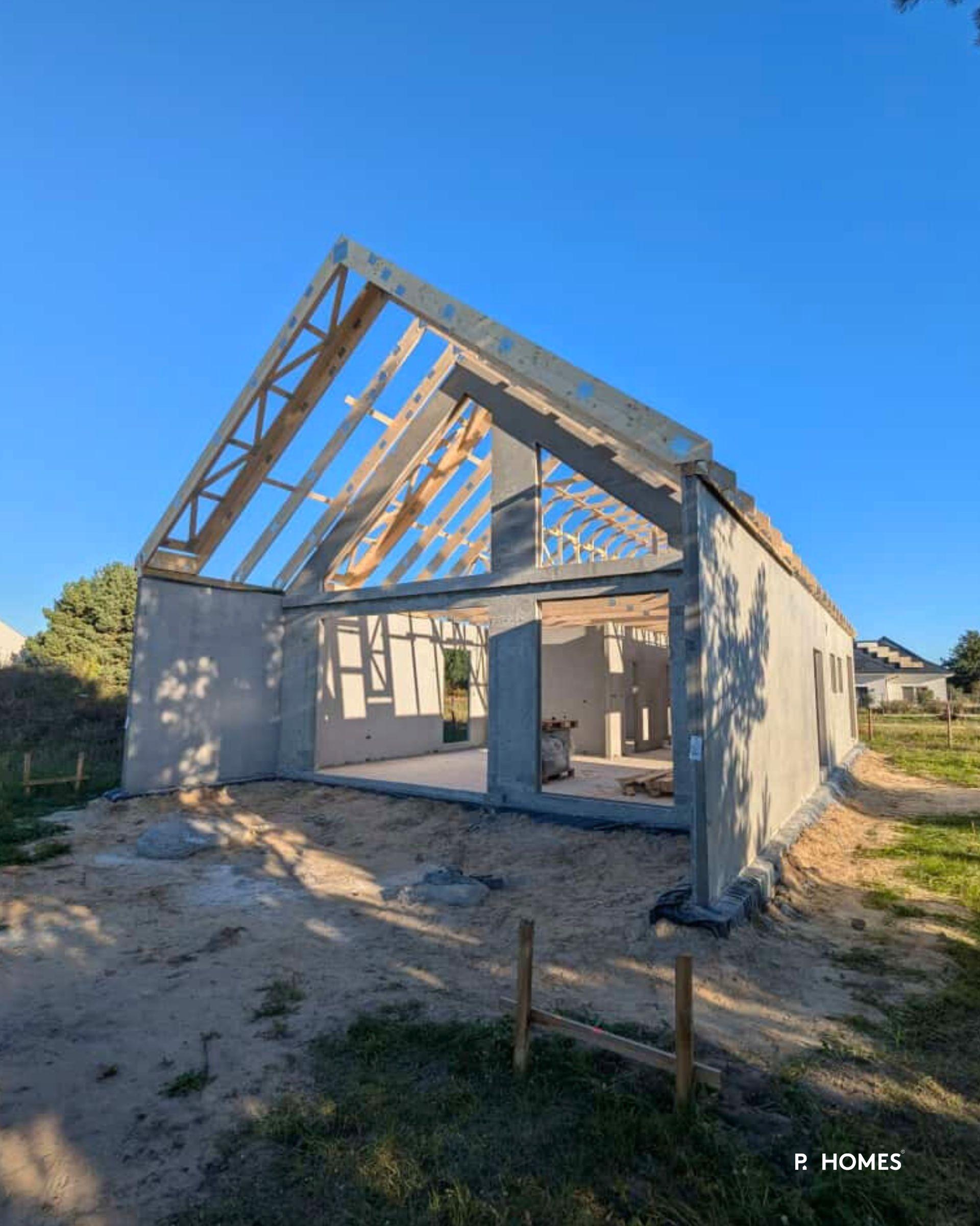 W przypadku standardowego zakresu prac oraz przy typowej konfiguracji domu prefabrykowanego. Zakres ten obejmuje m.in. dom parterowy, z poddaszem użytkowym lub piętrowy, bez istotnych zmian konstrukcyjnych, realizowany w standardzie deweloperskim, na działce z gotowymi przyłączami oraz bez konieczności wykonywania prac dodatkowych (np. palowania, niestandardowych fundamentów czy rozbudowanych instalacji). Deklarowany czas dotyczy okresu letniego, w którym panują optymalne uwarunkowania organizacyjno-wykonawcze. Ostateczny harmonogram oraz możliwość realizacji inwestycji w tym czasie należy potwierdzić z naszym przedstawicielem.